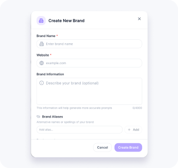 Add your brand name, website, and target market to start monitoring AI visibility.